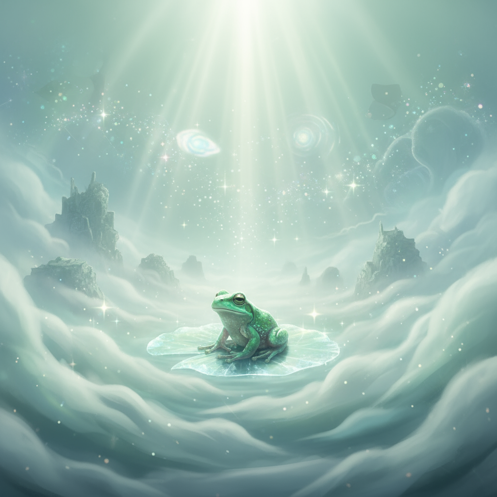 흰 개구리는 다소 드문 상징인데, 순수한 기회·희귀한 인연·영적인 감수성을 의미할 때가 많아요. 나를 도와줄 사람이나, 특별한 제안이 들어올 수도 있는 시기예요.