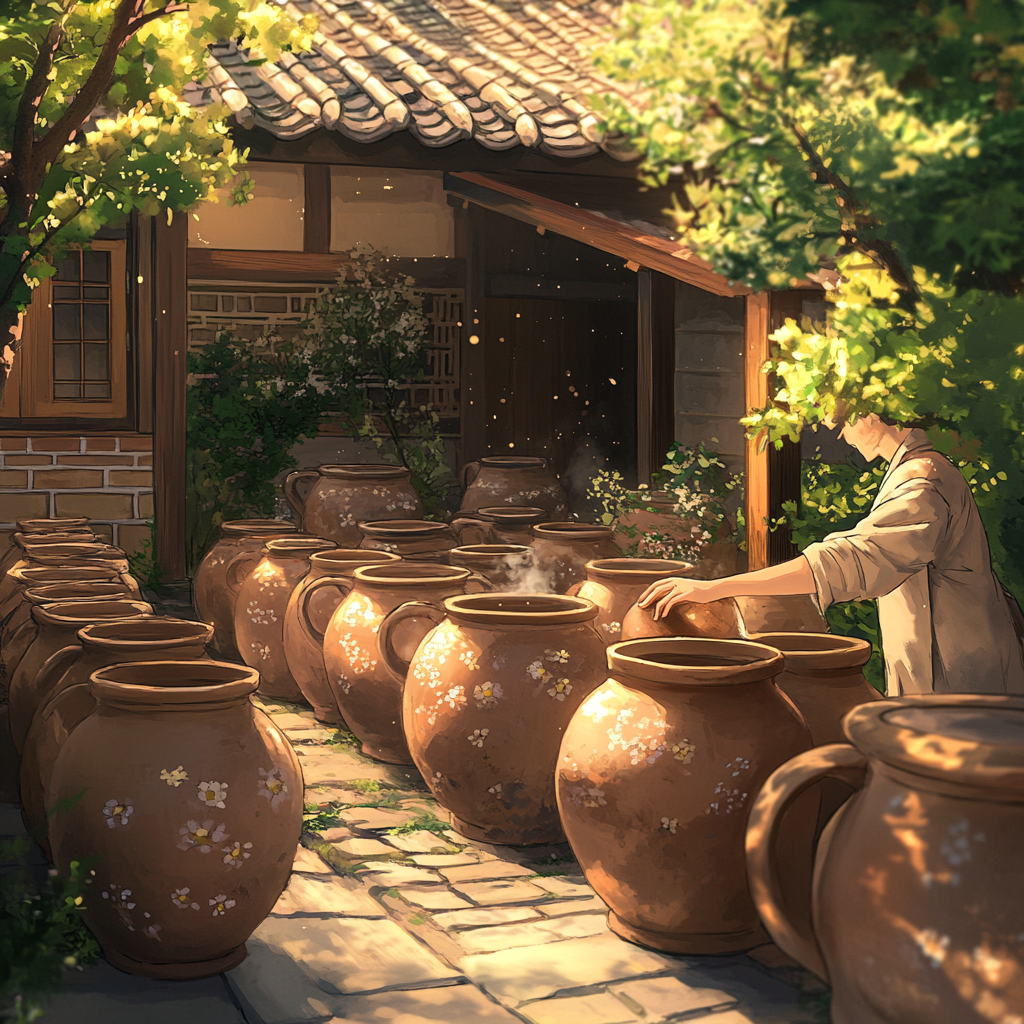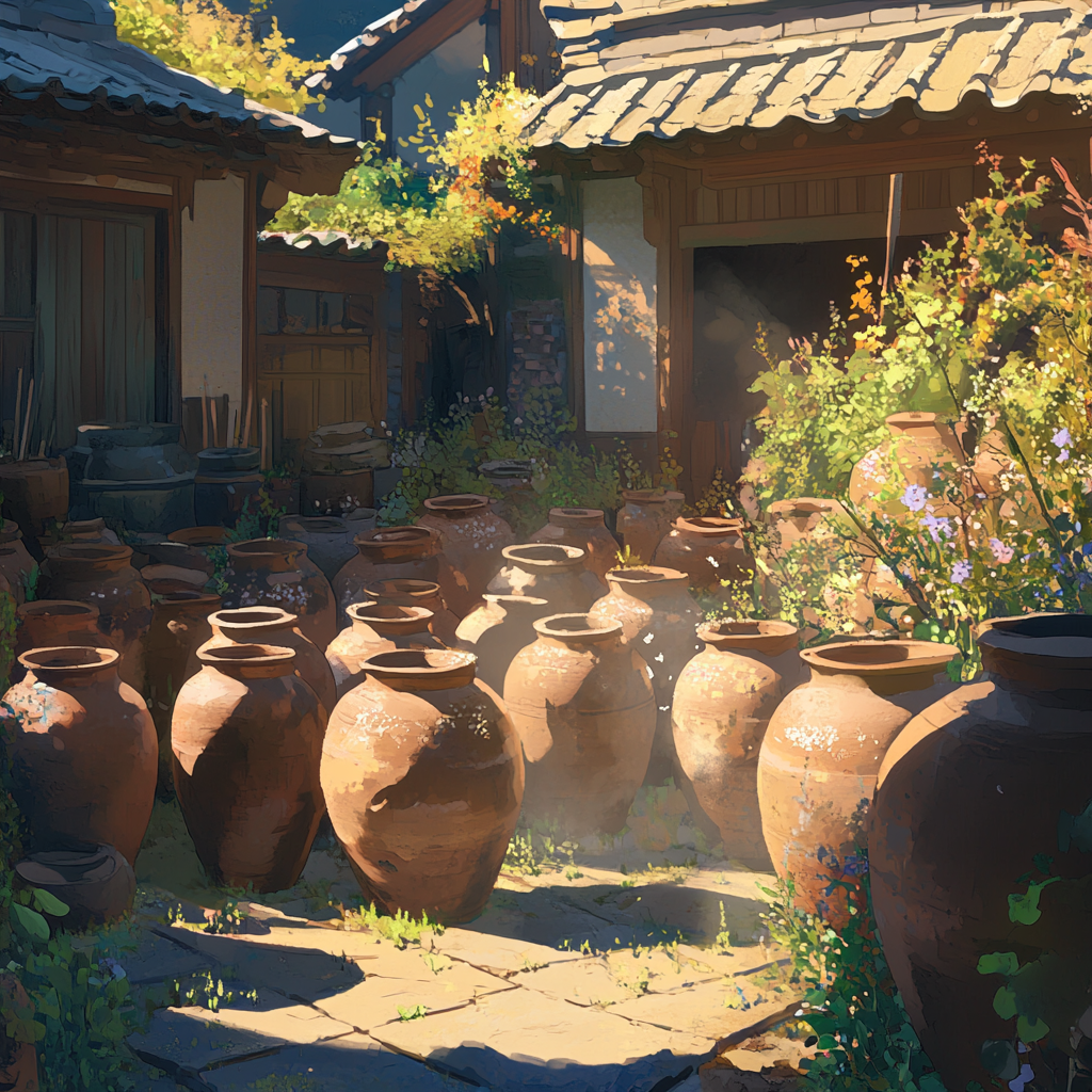 장독대 항아리처럼 김치·된장·간장이 담겨 있다면, 집안 전통·가풍·오래된 습관을 상징해요. 요즘 가족 문제나 부모님, 고향, 뿌리에 대한 생각이 많이 올라왔을 때 이런 꿈을 꾸기 쉬워요.